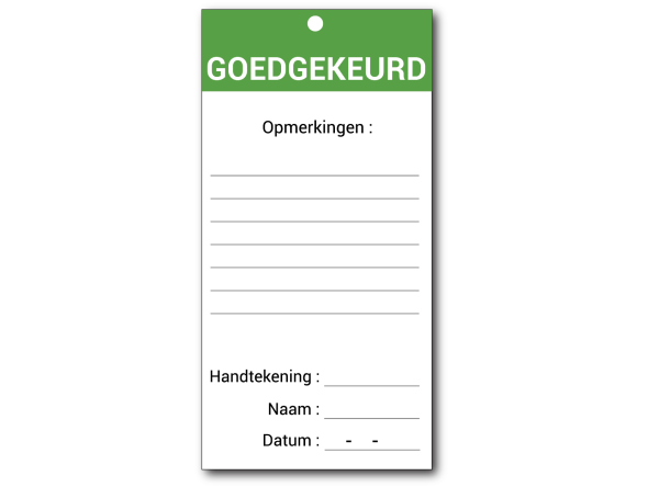 Deze labels kunt u gebruiken om kenbaar te maken dat uw materiaal is afgekeurd. Schrijf hierbij met pen eventueel extra opmerkingen en teken af met handtekening, naam en datum.