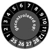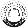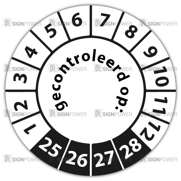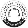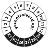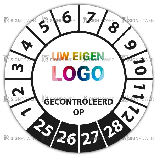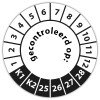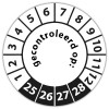 De keuringssticker "gecontroleerd op" heeft een diameter van 20mm, 30mm of 40mm. U kunt tevens kiezen voor een begin jaartal en het aantal keuringsstickers op vel.