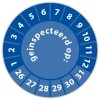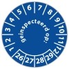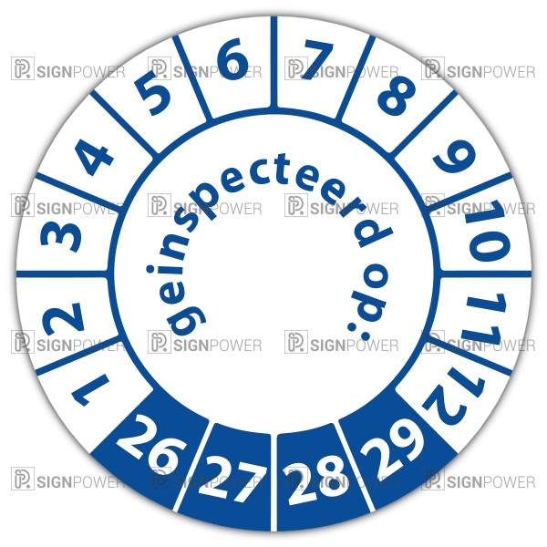 De keuringssticker "geinspecteerd op" heeft een diameter van 20mm, 30mm of 40mm. U kunt tevens kiezen voor een begin jaartal en het aantal keuringsstickers op vel.