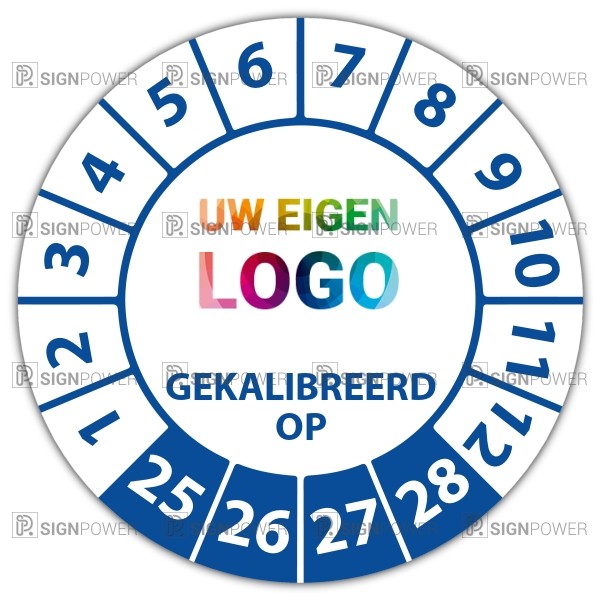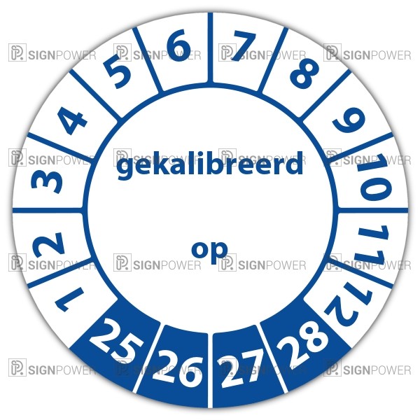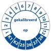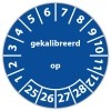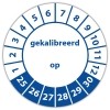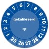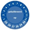 De keuringssticker "gekalibreerd op" heeft een diameter van 20mm, 30mm of 40mm. U kunt tevens kiezen voor een begin jaartal en het aantal keuringsstickers op rol.