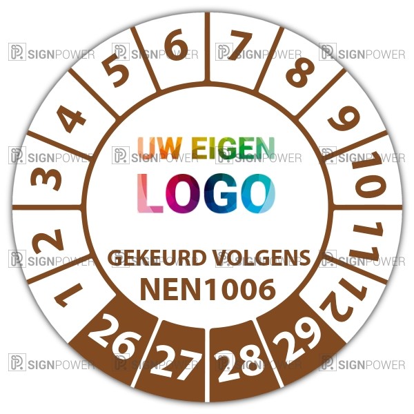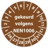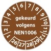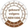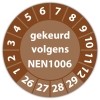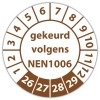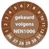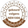 De keuringssticker "gekeurd volgens nen 1006" heeft een diameter van 20mm, 30mm of 40mm. U kunt tevens kiezen voor een begin jaartal en het aantal keuringsstickers op vel.