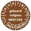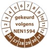 De keuringssticker "gekeurd volgens nen 1594" heeft een diameter van 20mm, 30mm of 40mm. U kunt tevens kiezen voor een begin jaartal en het aantal keuringsstickers op rol.