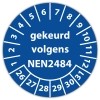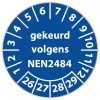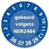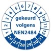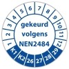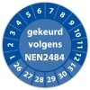 De keuringssticker "gekeurd volgens nen 2484" heeft een diameter van 20mm, 30mm of 40mm. U kunt tevens kiezen voor een begin jaartal en het aantal keuringsstickers op vel.