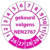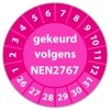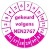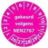 De keuringssticker "gekeurd volgens nen 2767" heeft een diameter van 20mm, 30mm of 40mm. U kunt tevens kiezen voor een begin jaartal en het aantal keuringsstickers op vel.