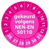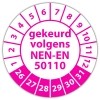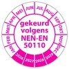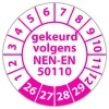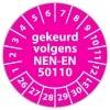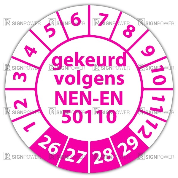 De keuringssticker "gekeurd volgens nen-en 50110" heeft een diameter van 20mm, 30mm of 40mm. U kunt tevens kiezen voor een begin jaartal en het aantal keuringsstickers op vel.