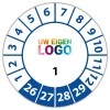 De keuringssticker genummerd met logo heeft een diameter van 20mm, 30mm of 40mm. U kunt tevens kiezen voor een begin jaartal en het aantal keuringsstickers op rol.
