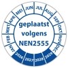 U kunt snel en eenvoudig de keuringssticker "geplaatst volgens nen 2555" bestellen door te klikken op "Bestel dit product". Hierna kunt u afrekenen of indien gewenst verder winkelen. U kunt zelf aangegeven zelf aangeven op welk adres de keuringsstickers moeten worden afgeleverd. U heeft tevens de mogelijkheid om op rekening te bestellen.