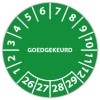 De keuringssticker "goedgekeurd" (met datum) heeft een diameter van 20mm, 30mm of 40mm. U kunt tevens kiezen voor een begin jaartal en het aantal keuringsstickers op vel.
