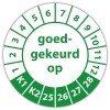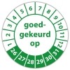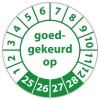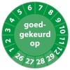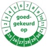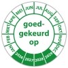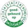 De keuringssticker "goedgekeurd op" heeft een diameter van 20mm, 30mm of 40mm. U kunt tevens kiezen voor een begin jaartal en het aantal keuringsstickers op vel.