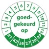 Ook voor de keuringssticker ultra destructable "goedgekeurd op" geldt dat u gratis uw eigen logo kan laten meedrukken, upload online uw logo en zie direct live de digitale drukproef.
