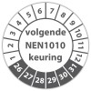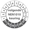 Ook voor de keuringssticker ultra destructable "volgende nen 1010 keuring" geldt dat u gratis uw eigen logo kan laten meedrukken, upload online uw logo en zie direct live de digitale drukproef.