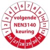 Ook voor de keuringssticker ultra destructable "volgende nen 3140 keuring" geldt dat u gratis uw eigen logo kan laten meedrukken, upload online uw logo en zie direct live de digitale drukproef.