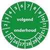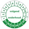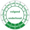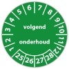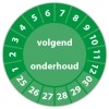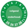 De keuringssticker "volgend onderhoud" heeft een diameter van 20mm, 30mm of 40mm. U kunt tevens kiezen voor een begin jaartal en het aantal keuringsstickers op rol.