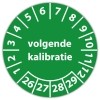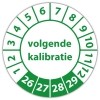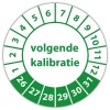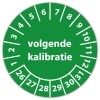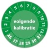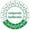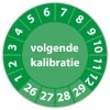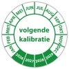 De keuringssticker "volgende kalibratie" heeft een diameter van 20mm, 30mm of 40mm. U kunt tevens kiezen voor een begin jaartal en het aantal keuringsstickers op rol.