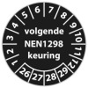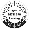 De keuringssticker "volgende nen 1298 keuring" heeft een diameter van 20mm, 30mm of 40mm. U kunt tevens kiezen voor een begin jaartal en het aantal keuringsstickers op rol.