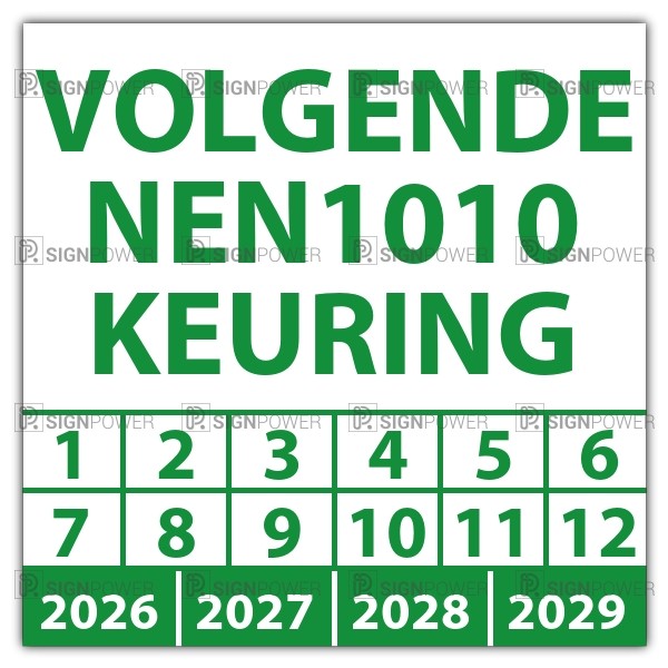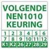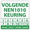 Keuringssticker "volgende NEN1010 keuring" vierkant