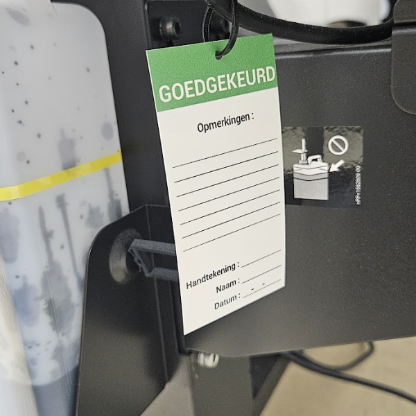 Deze labels kunt u gebruiken om kenbaar te maken dat uw materiaal is goedgekeurd. Schrijf hierbij met pen eventueel extra opmerkingen en teken af met handtekening en datum.