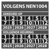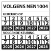 • Keuringssticker dubbel "volgens NEN 1004"