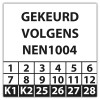 Keuringssticker "gekeurd volgens NEN 1004" vierkant