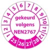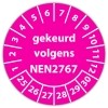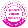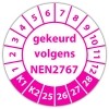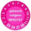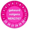 Keuringssticker "gekeurd volgens NEN 2767" op vel