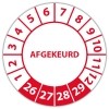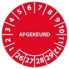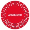 In de categorie kunt u zelf de tekst kleur en lettertype bepalen. Rechthoek, ovaal, rond of vierkant in diverse maten. De keuringssticker "afgekeurd" (met datum) is gedrukt op een (matte) zelfklevend niet scheurbaar PP vinyl. Ten op zichte van papieren stickers zijn deze watervast. Uw stickers worden afgeleverd in een handig doosje