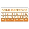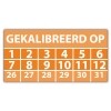 In de categorie kunt u zelf de tekst kleur en lettertype bepalen. Rechthoek, ovaal, rond of vierkant in diverse maten. De keuringssticker "gekalibreerd op" is gedrukt op een (matte) zelfklevend niet scheurbaar PP vinyl. Ten op zichte van papieren stickers zijn deze watervast. Uw stickers worden afgeleverd in een handig doosje
