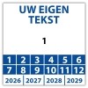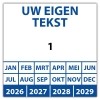In de categorie kunt u zelf de tekst kleur en lettertype bepalen. Rechthoek, ovaal, rond of vierkant in diverse maten. De keuringssticker genummerd met tekst is gedrukt op een (matte) zelfklevend niet scheurbaar PP vinyl. Ten op zichte van papieren stickers zijn deze watervast. Uw stickers worden afgeleverd in een handig doosje