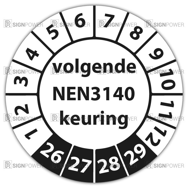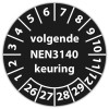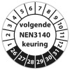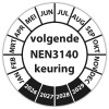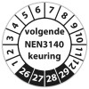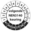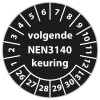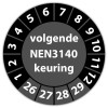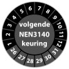 Keuringssticker "volgende NEN 3140 keuring" op vel
